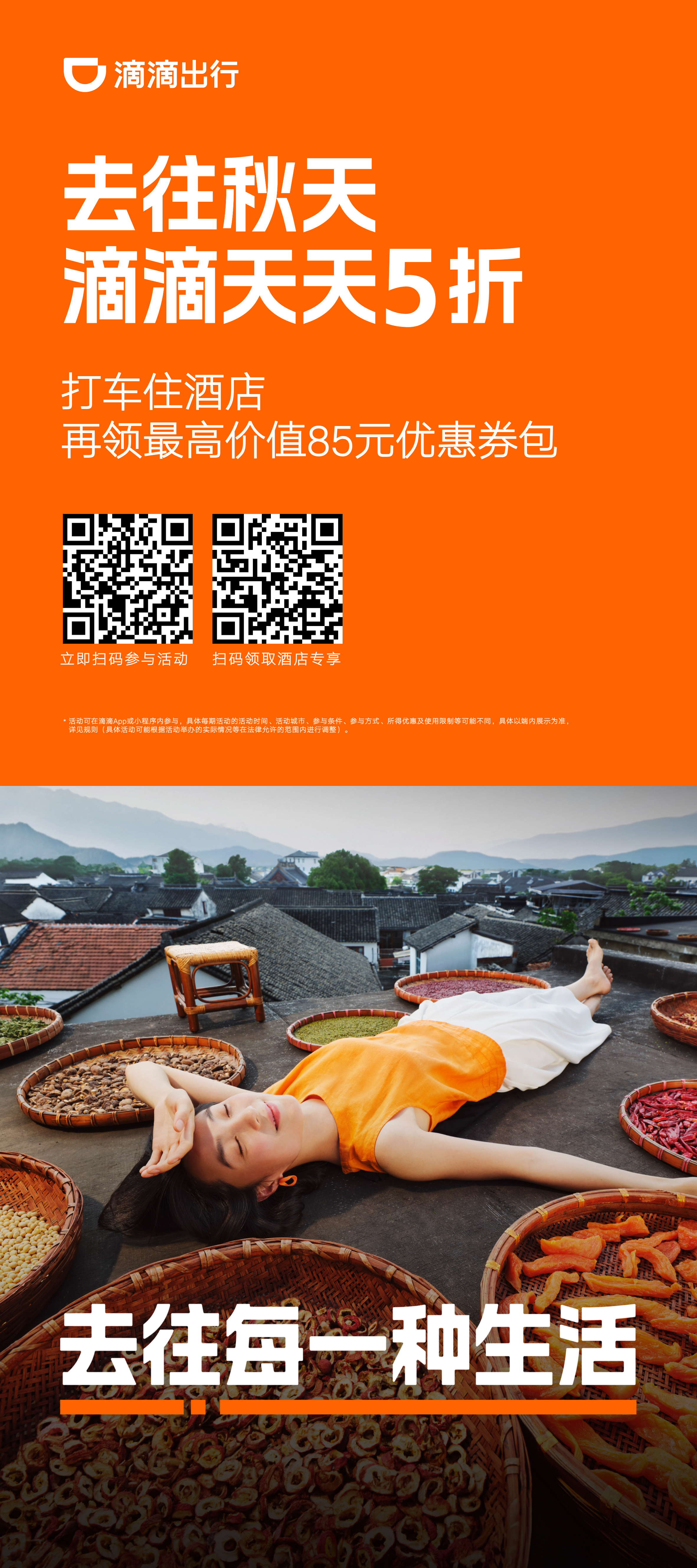 让我们一起抓住秋天的脚步,用滴滴出行畅游山城,享受酒店的贴心服务,开启一段五折的美好旅程吧!